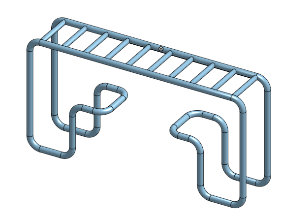Solidworks のように3Dスケッチは使えないので、下図のような形はスケッチ面たくさん作って線で形状を作りスイープすることになります